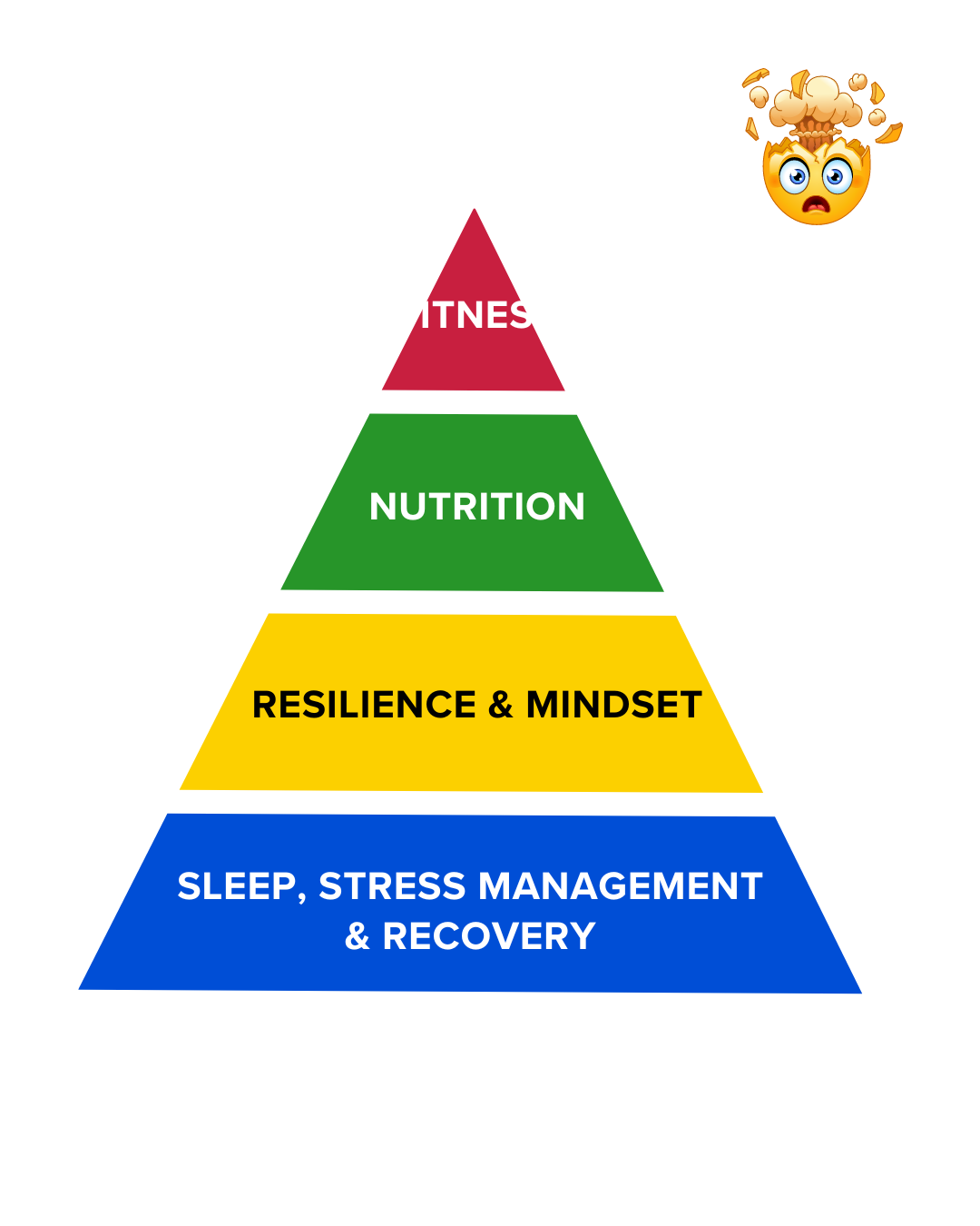 A holistic model that underscores the importance of a balanced foundation—sleep, stress management, recovery, mindset and resilience—as essential components for achieving peak performance and maximising success in- and outside the gym.